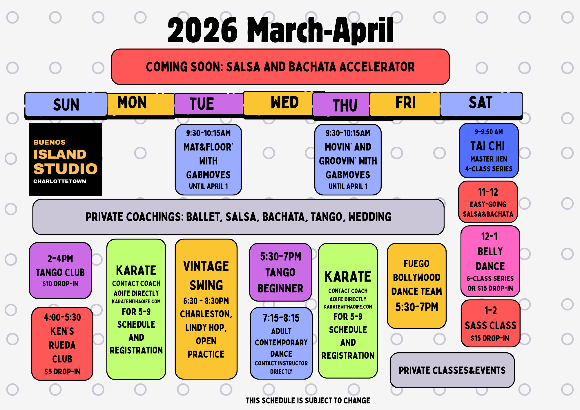 Move in Community Scroll down for signup form Weekly schedule(signup form below) ONGOING SERIES (require registration) DROP-IN Classes Sign-up Form