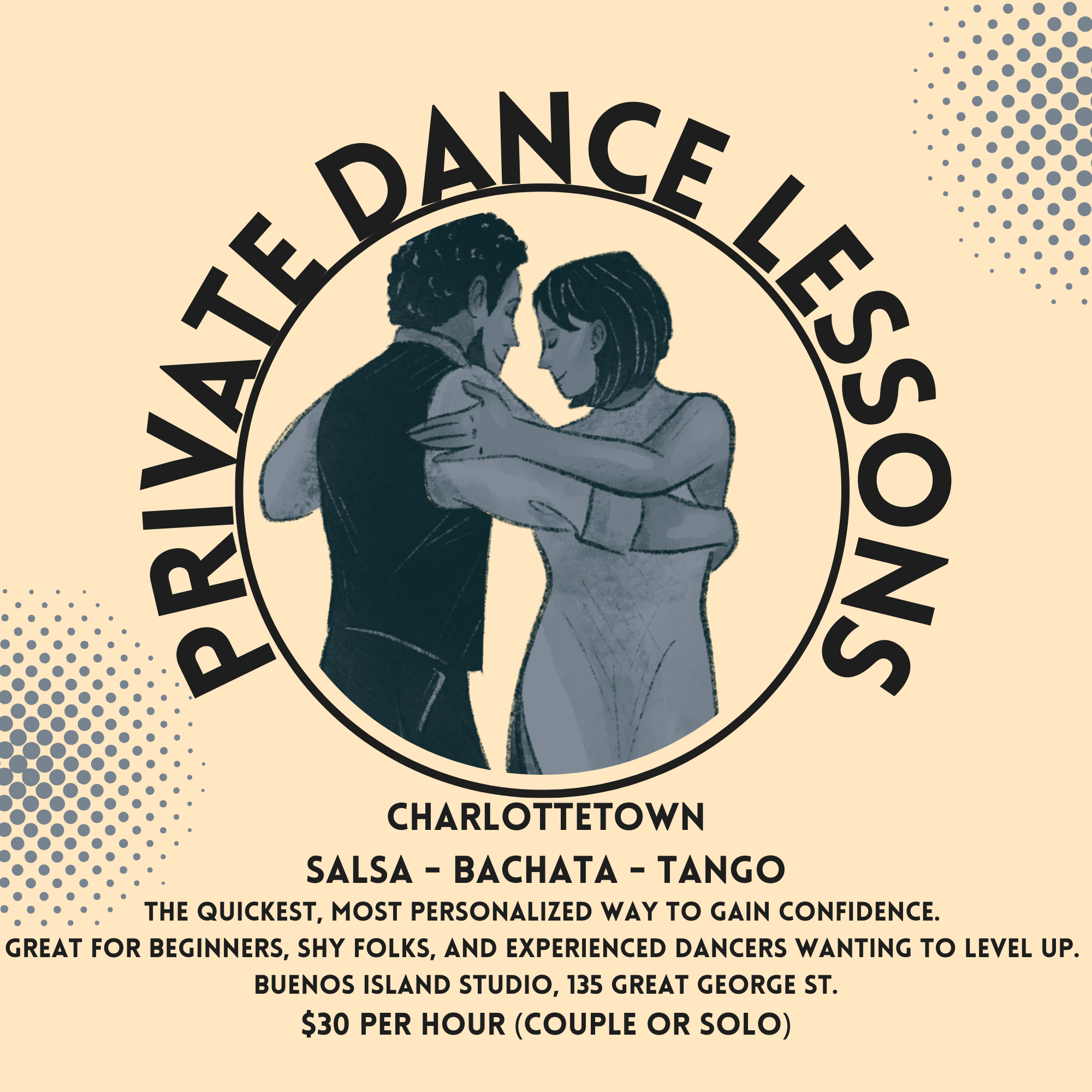 Salsa, Argentine Tango, and Bachata: $30 per hour